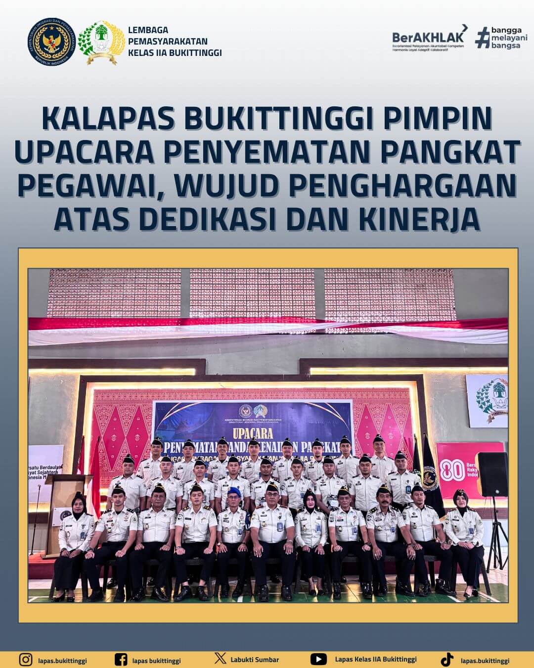 LAPAS KELAS IIA BUKITTINGGI LAKSANAKAN APEL PAGI BARENG PENYEMATAN TANDA PANGKAT PEGAWAI