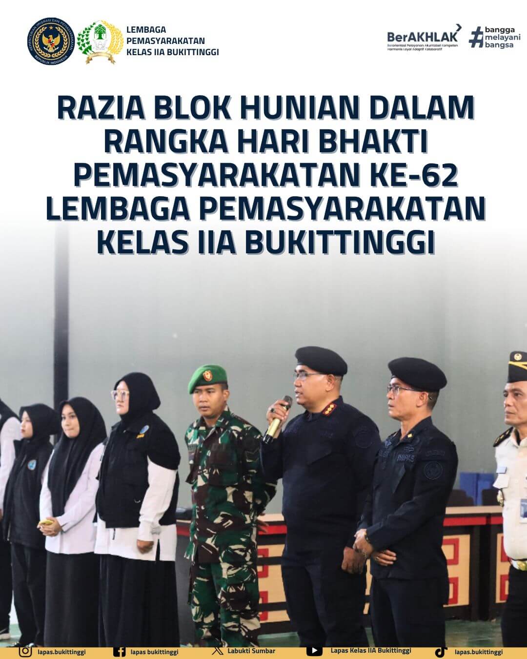 RAZIA BLOK HUNIAN DALAM RANGKA HARI BHAKTI PEMASYARAKATAN KE-62 LEMBAGA PEMASYARAKATAN KELAS IIA BUKITTINGGI