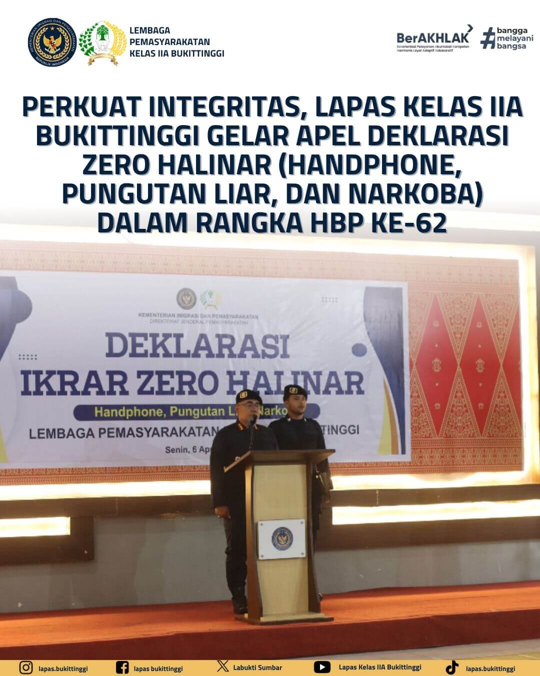 Perkuat Integritas di HBP ke-62, Lapas Bukittinggi Deklarasikan Zero HALINAR