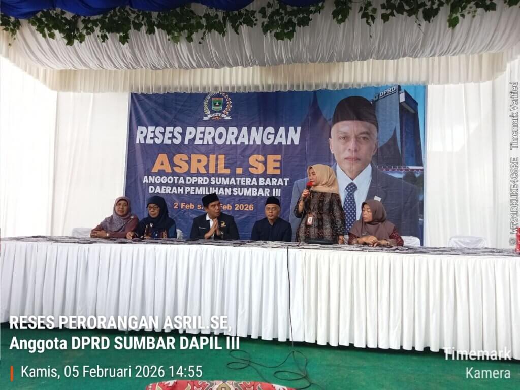 Bukittinggi – Dirgantaraku. com, -Anggota Dewan Perwakilan Rakyat Daerah DPRD Provinsi Sumatera Barat dari partai (Nasdem) Daerah Pemilihan Dapil Sumbar III, Asril.SE, menggelar kegiatan reses perorangan di RT 02/RW 01 Kelurahan Kayu Kubu, Kecamatan Guguak Panjang, Bukittinggi. Kegiatan reses yang merupakan bagian dari tugas dan fungsi anggota dewan provinsi ini bertujuan untuk mempererat hubungan dengan masyarakat sekaligus mendengar aspirasi langsung warga, sekaligus menjembatani komunikasi antara pemerintah daerah provinsi dengan lapisan masyarakat di tingkat kelurahan