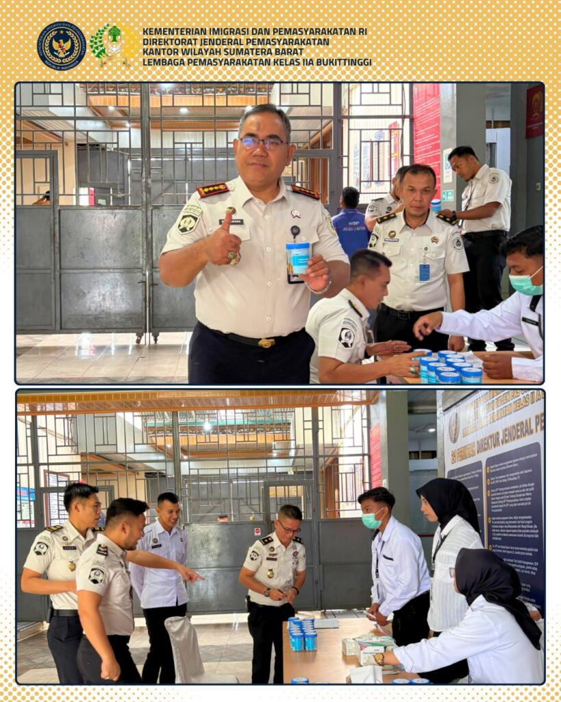 Bukittinggi -Dirgantaraku.com,-Lembaga Pemasyarakatan (Lapas) Kelas IIA Bukittinggi melaksanakan kegiatan tes urin sebagai bagian dari program aksi yang digagas oleh Menteri Hukum dan HAM terkait pencegahan penyalahgunaan narkoba di lingkungan pemasyarakatan (tanggal menyesuaikan). Kegiatan ini melibatkan seluruh pegawai serta 50 orang warga binaan pemasyarakatan (WBP) dengan tujuan utama deteksi dini, penguatan pengawasan, dan peningkatan kepatuhan internal.