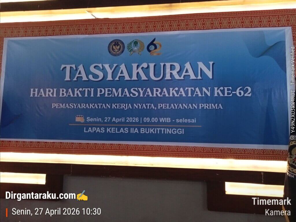 Bukittinggi, 27 April 2026 –Dirgantaraku.com,-Lembaga Pemasyarakatan Kelas IIA Bukittinggi menggelar tasyakuran Hari Bakti Pemasyarakatan ke-62 pada Senin, 27 April 2026. Mengusung tema “Pemasyarakatan Kerja Nyata, Pelayanan Prima”, acara ini dijadikan titik tolak bagi seluruh jajaran untuk berbenah dan meningkatkan kinerja secara menyeluruh.