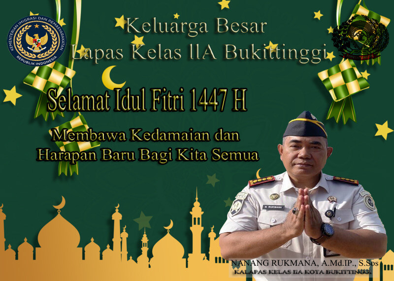 Bukittinggi-Dirgantaraku.com,-19-03-2026 — Gema takbir yang biasanya menghiasi pelataran ikonik Jam Gadang kini menemukan pantulannya yang penuh makna di lorong-lorong Lapas Kelas IIA Bukittinggi. Di tengah suasana yang khidmat dan penuh refleksi, Kepala Lapas, Nanang Rukmana, bersama seluruh jajaran stafnya berdiri tegas di aula pembinaan untuk menyampaikan ucapan selamat Hari Raya Idul Fitri 1447 Hijriah tahun 2026. Sapaan hangat tersebut tidak hanya ditujukan kepada seluruh warga binaan yang merayakan, tetapi juga secara khusus untuk keluarga mereka yang menanti di rumah, sebagai bentuk penghargaan atas kesabaran dan dukungan yang tidak pernah pudar.
