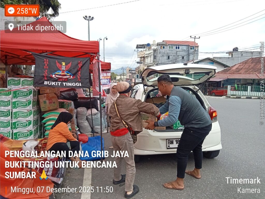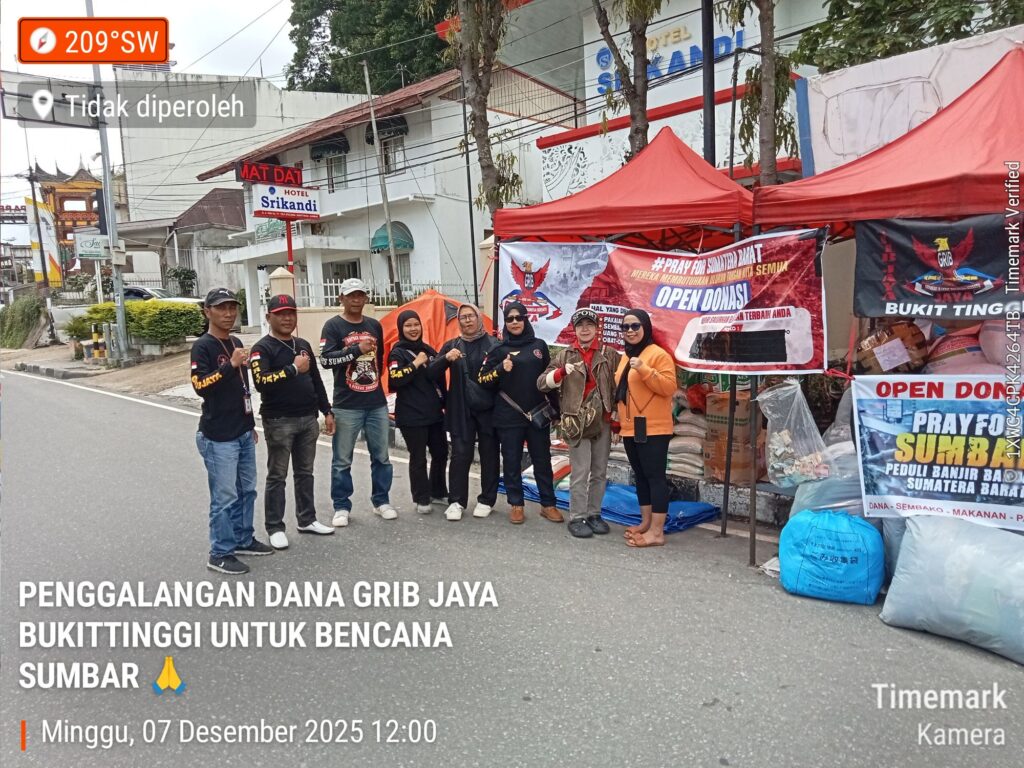 Bukittinggi,7 Desember 2025 –Dirgantaraku.com ,-Memasuki hari ke-7, penggalangan dana yang dilakukan oleh organisasi ternama di Indonesia, Grib Jaya, masih berjalan sesuai rencana. Hal ini disampaikan Panglima Grib Jaya Sumatera Barat beserta Ketua DPC Grib Jaya Bukittinggi, yang kemudian diteruskan kepada Ketua PAC Grib Jaya ABTB Bukittinggi, bahwa penggalangan dana ini akan berakhir pada hari Minggu, 7 Desember 2025. Selanjutnya, fokus akan dialihkan ke proses penyaluran bahan bantuan ke daerah yang terdampak bencana.