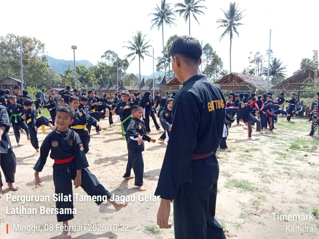 AGAM –Dirgantaraku.com,-08 FEBRUARI 2026 – Perguruan Silat Tameng Jagad menggelar kegiatan latihan bersama yang diikuti oleh lima perguruan besar dari wilayah Bukittinggi dan Kabupaten Agam. Acara yang berlangsung di objek wisata Magek Kapecong ini dihadiri oleh Perguruan PPS Tameng Jagad, PPS PSTD, PPS Luak Batuah, PPS Alang Singgalang, dan PPS Mandala Sumua, dengan jumlah pesilat yang berkumpul mencapai kurang lebih 300 orang dari berbagai usia.