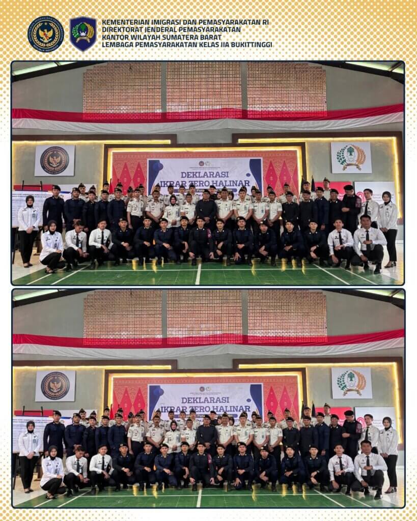 BUKITTINGGI, Dirgantaraku.com – Dalam rangka memperingati Hari Bhakti Pemasyarakatan (HBP) ke-62, Lapas Kelas IIA Bukittinggi menggelar Apel Deklarasi Zero HALINAR. Kegiatan ini dilaksanakan di Aula Lapas sebagai wujud komitmen kuat untuk menciptakan lingkungan pemasyarakatan yang bersih, sehat, dan berintegritas tinggi.